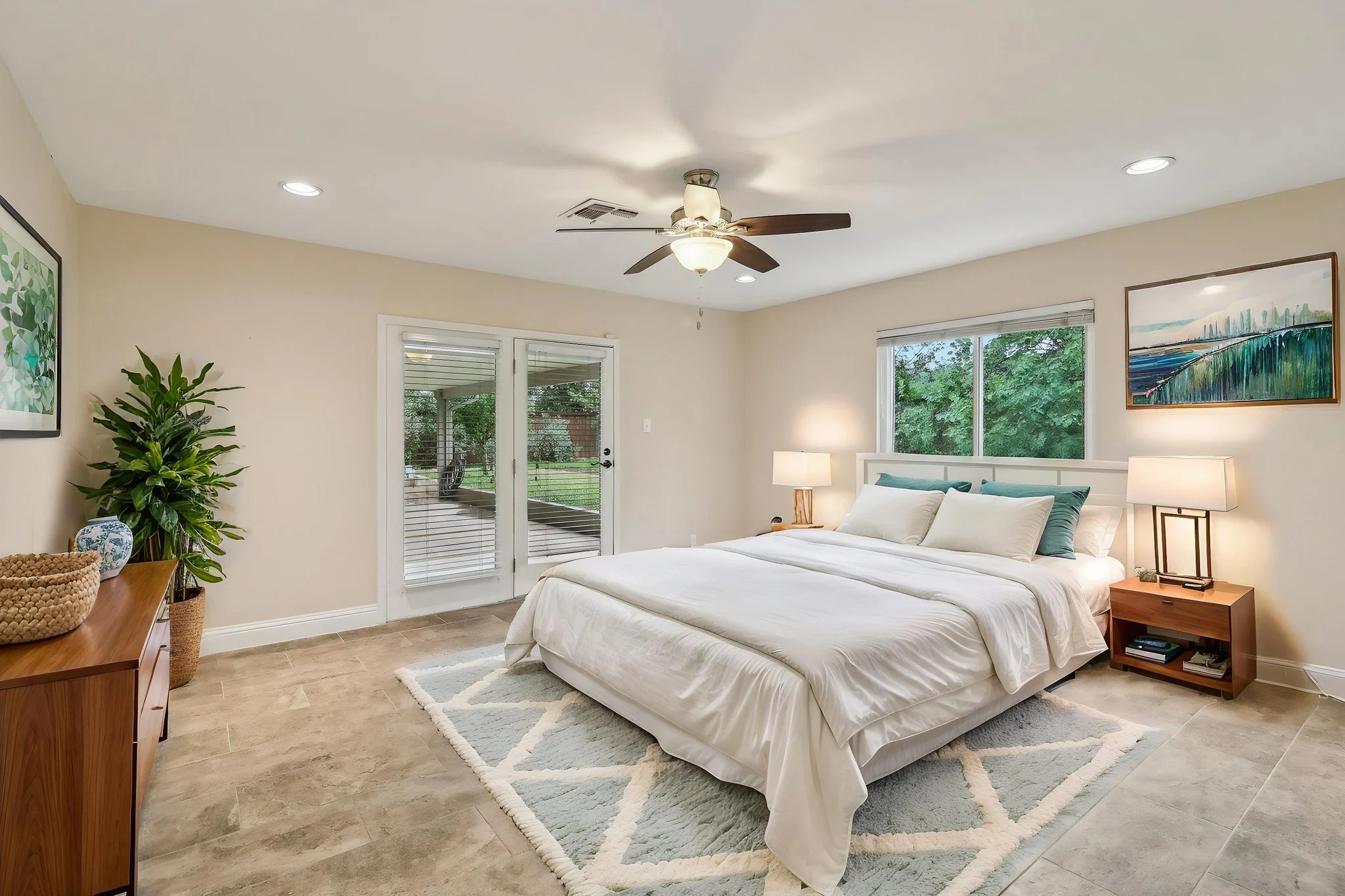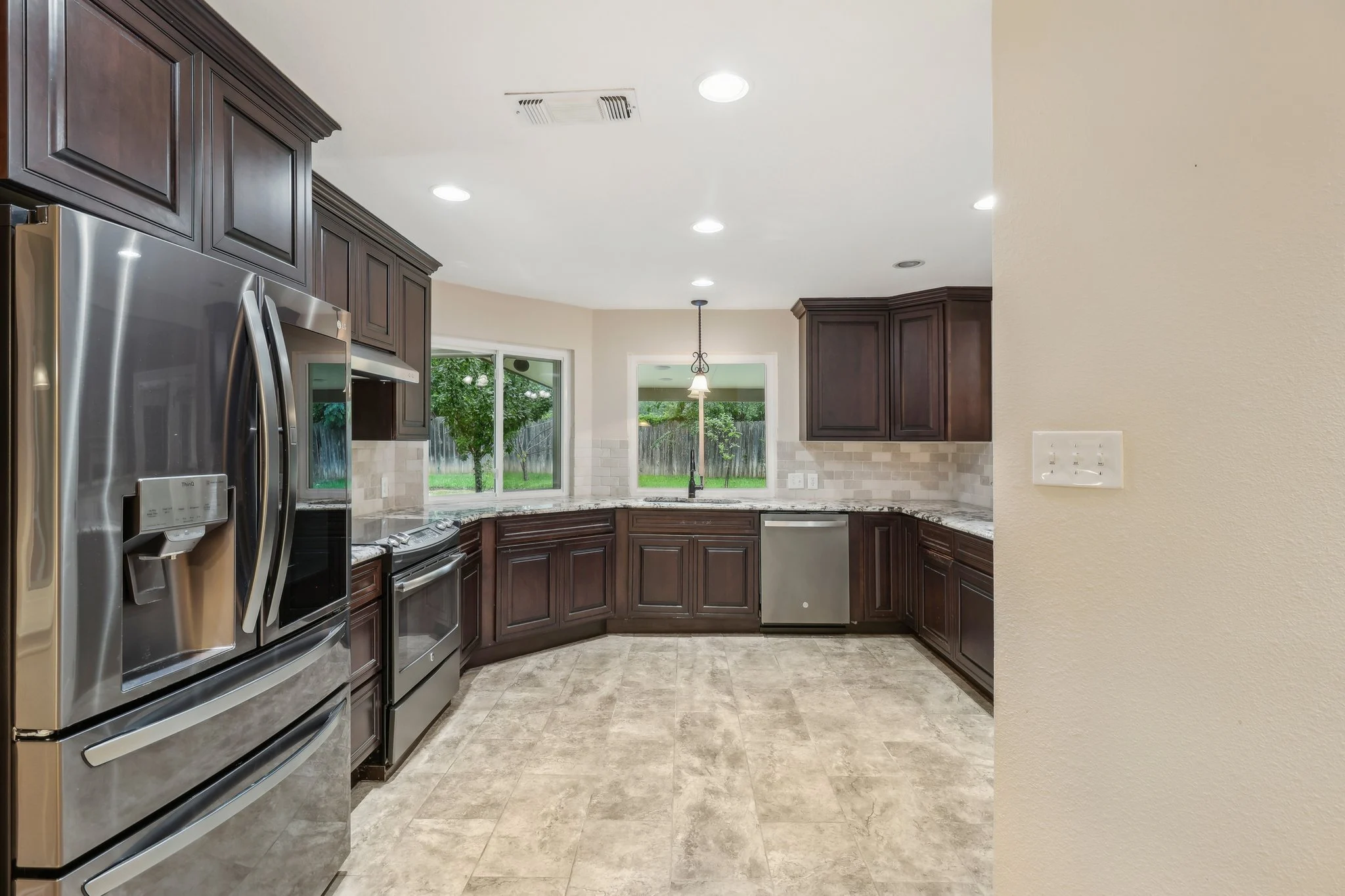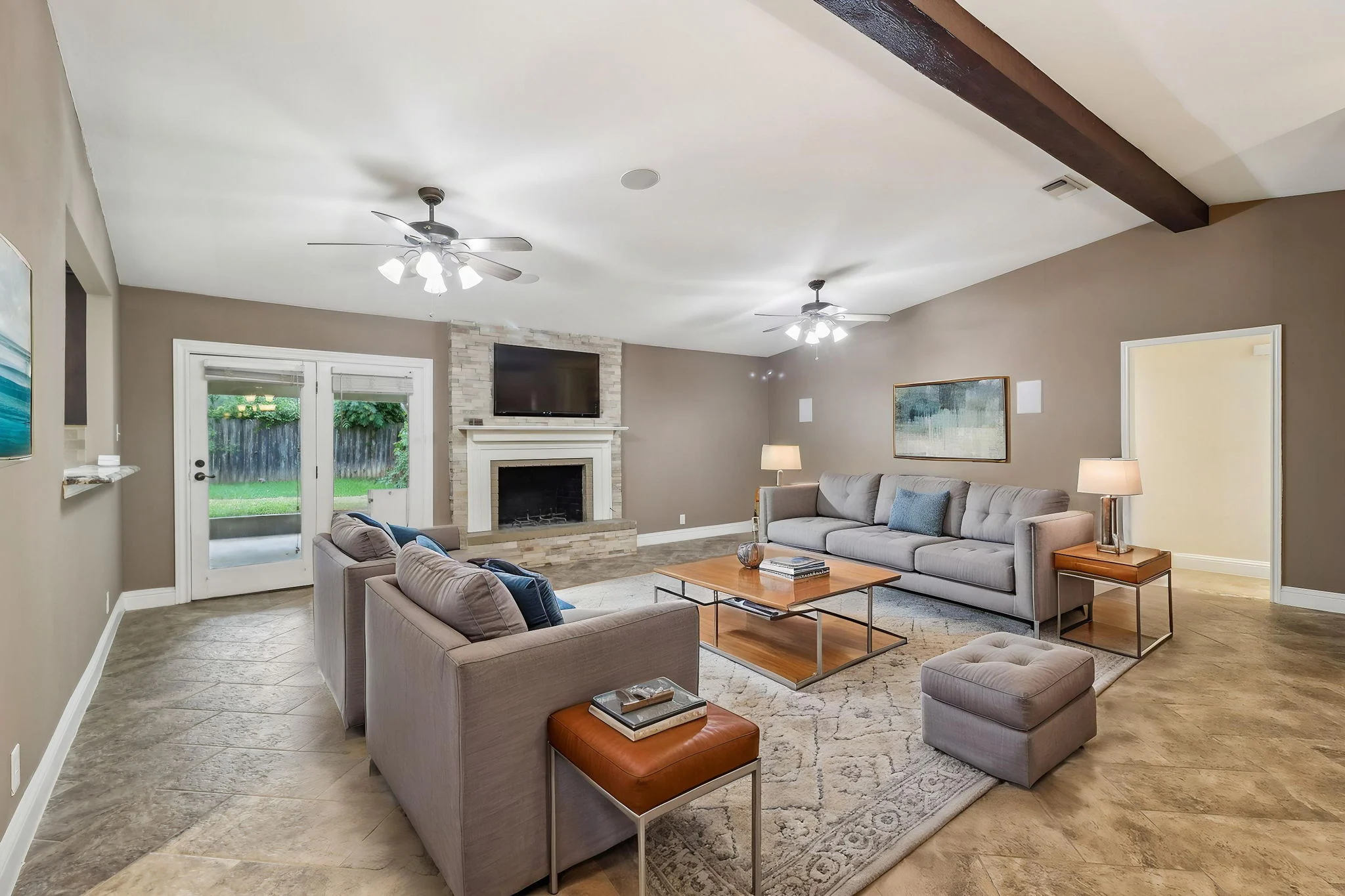 This beautifully updated single-story home sits in San Antonio’s desirable Hidden Forest neighborhood. Nestled on a spacious, tree-filled lot, it blends inviting living spaces with a warm community vibe. A generous front patio welcomes you, ideal for morning coffee or evening chats. Inside, the great room boasts a picture window and fireplace, seamlessly connecting to the family and dining areas—perfect for daily life or entertaining. The bright, open kitchen features ample counter space, a new stainless-steel refrigerator, and a dishwasher. Outside, a massive 30-by-30-foot covered patio awaits, great for year-round gatherings. Freshly painted inside and out with a new roof, this home is move-in ready.